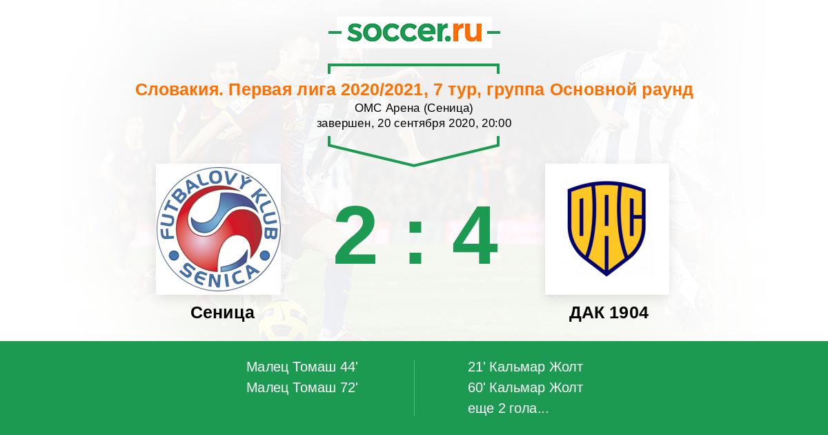 Протокол матча Сеница против ДАК 1904
