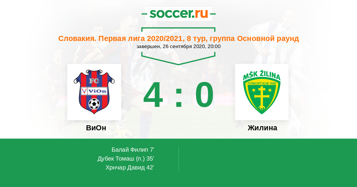 Протокол матча ВиОн против Жилина