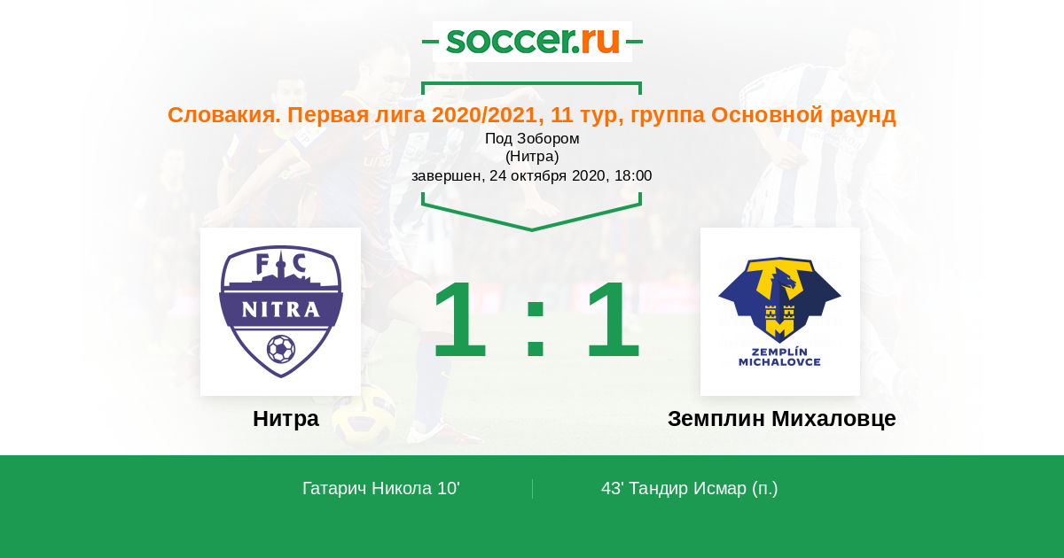 Протокол матча Нитра против Земплин Михаловце