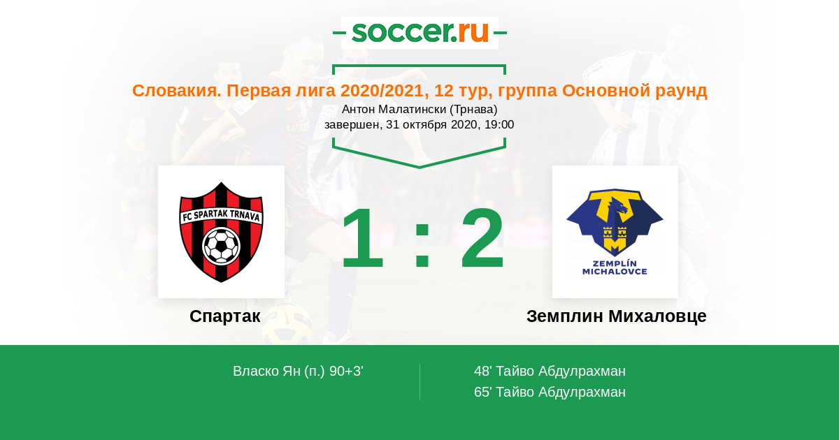 Протокол матча Спартак против Земплин Михаловце