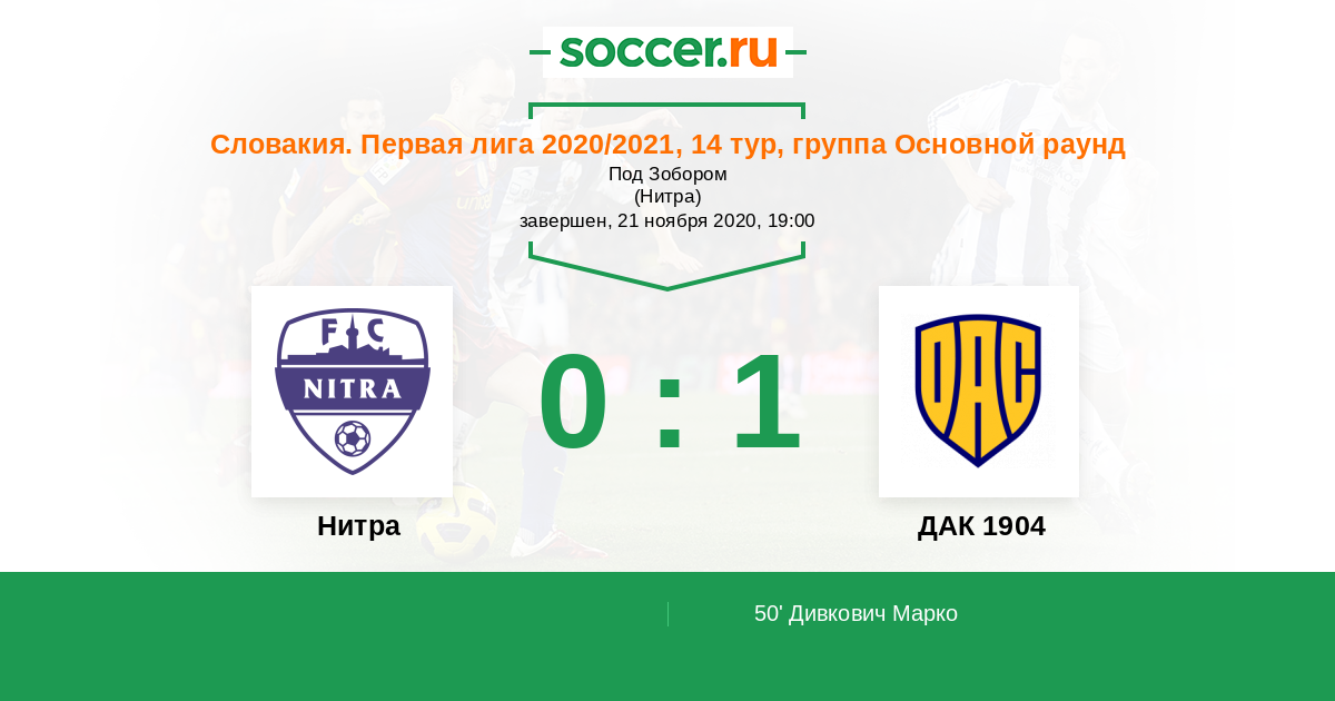 Протокол матча Нитра против ДАК 1904