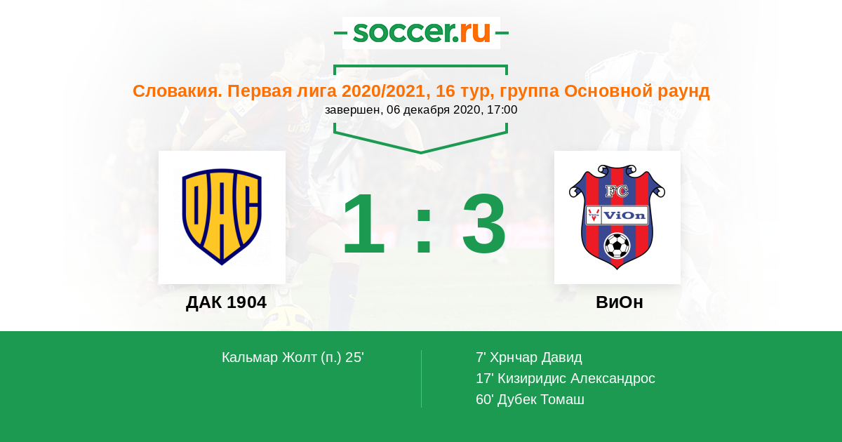 Протокол матча ДАК 1904 против ВиОн