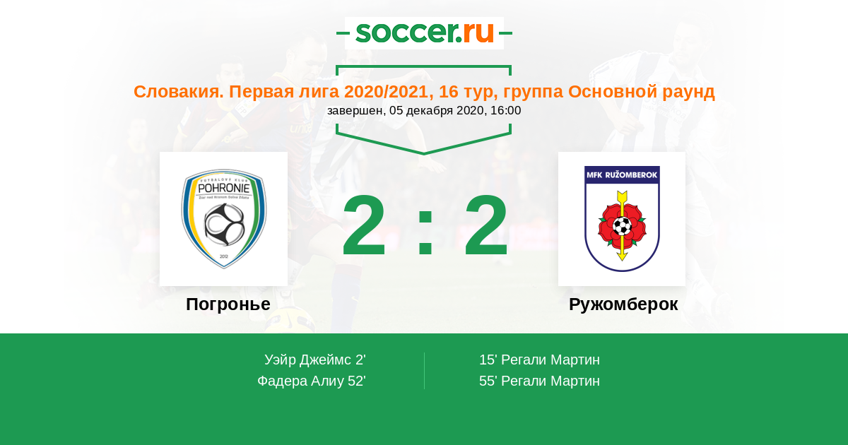 Протокол матча Погронье против Ружомберок