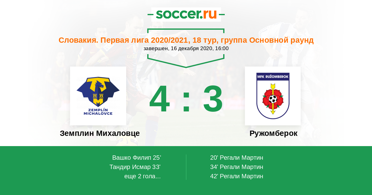 20' (0:1) Регали Мартин (9) (Такач Далибор (8))