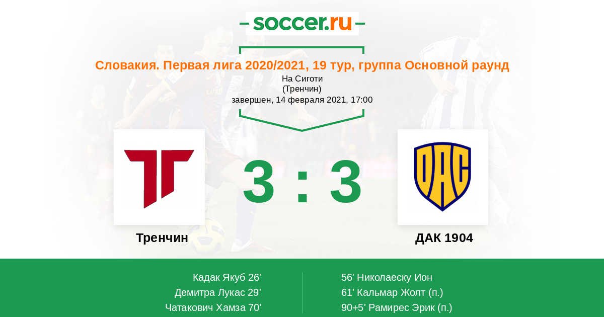 Протокол матча Тренчин против ДАК 1904
