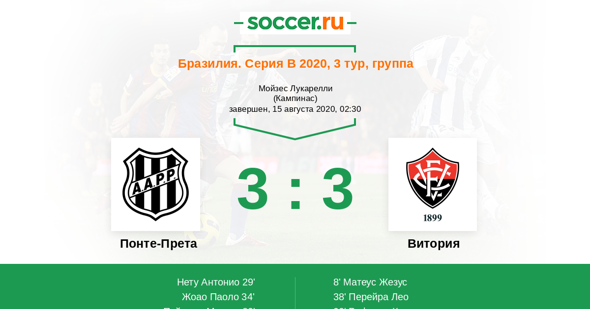 Протокол матча Понте-Прета против Витория