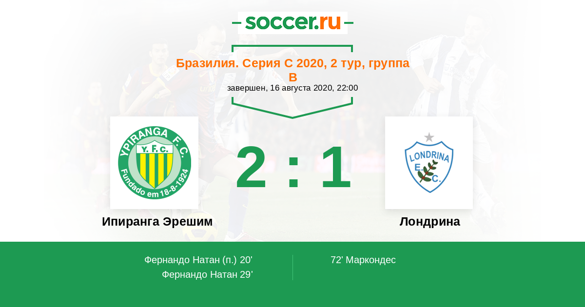 Протокол матча Ипиранга Эрешим против Лондрина
