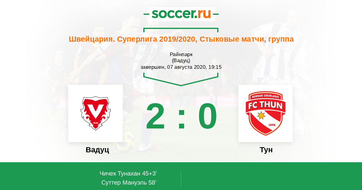Протокол матча Вадуц против Тун