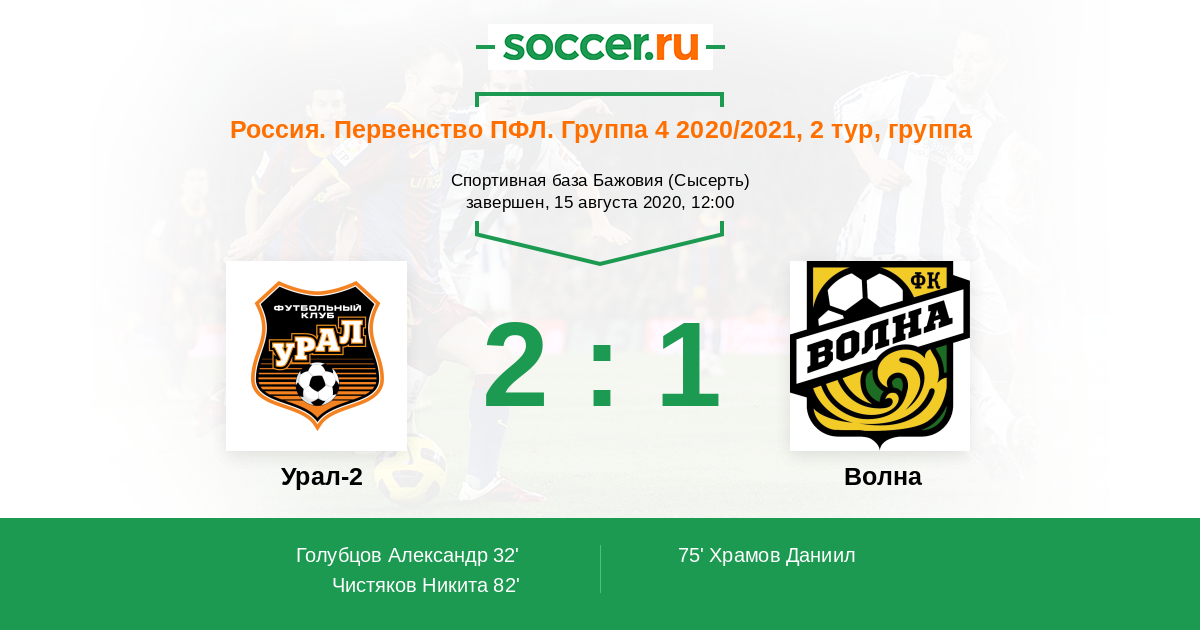 Протокол матча Урал-2 против Волна