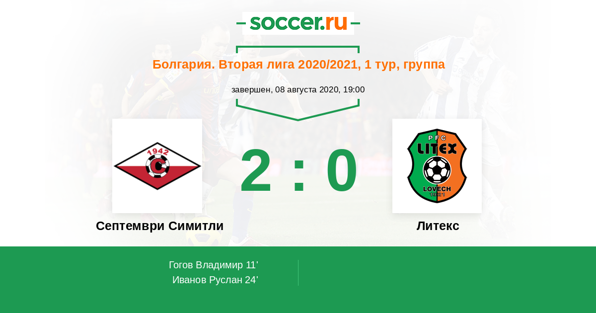 Протокол матча Септември Симитли против Литекс