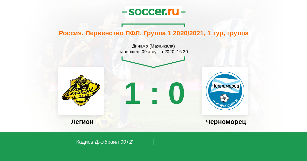 Протокол матча Легион против Черноморец