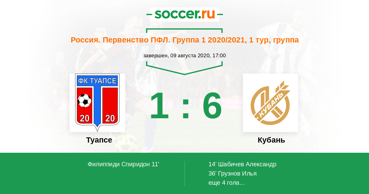 Протокол матча Туапсе против Кубань