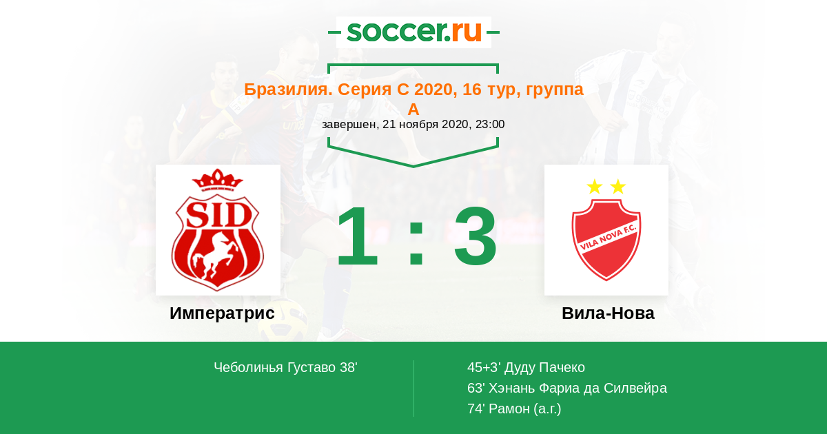 Протокол матча Императрис против Вила-Нова