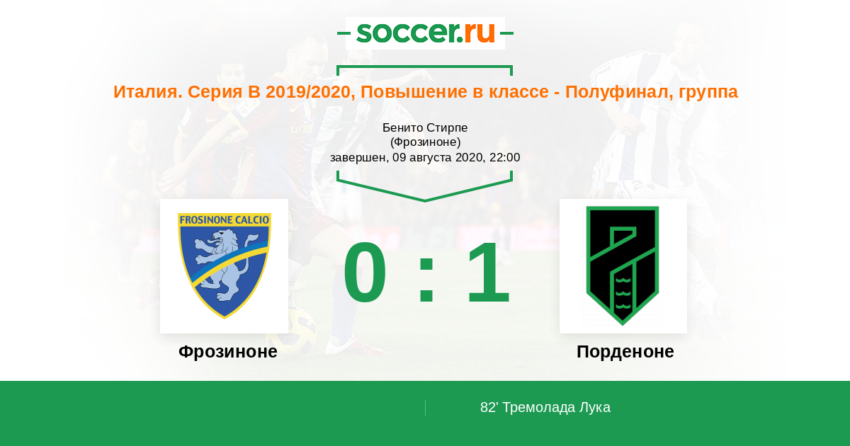 Протокол матча Фрозиноне против Порденоне