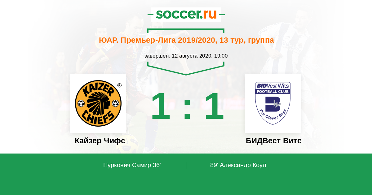 Протокол матча Кайзер Чифс против БИДВест Витс