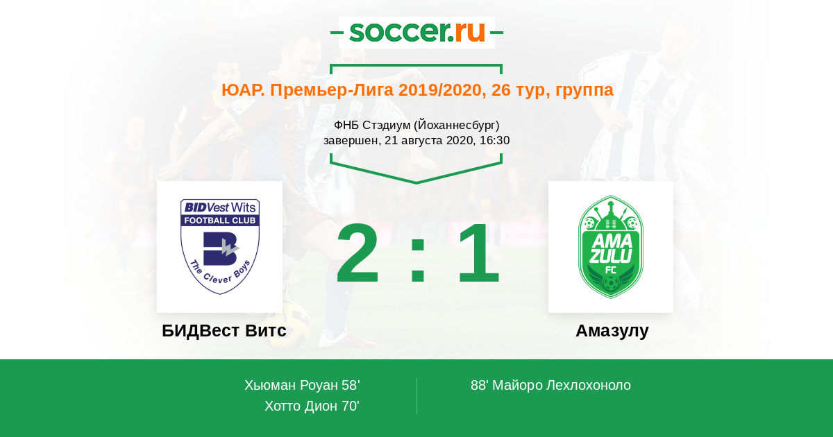 88' (2:1) Майоро Лехлохоноло (20) (Магубане Сифелеле (2))
