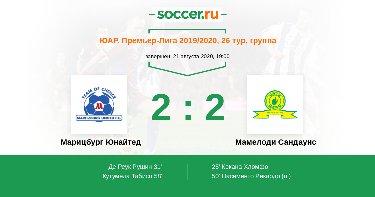 Протокол матча Марицбург Юнайтед против Мамелоди Сандаунс