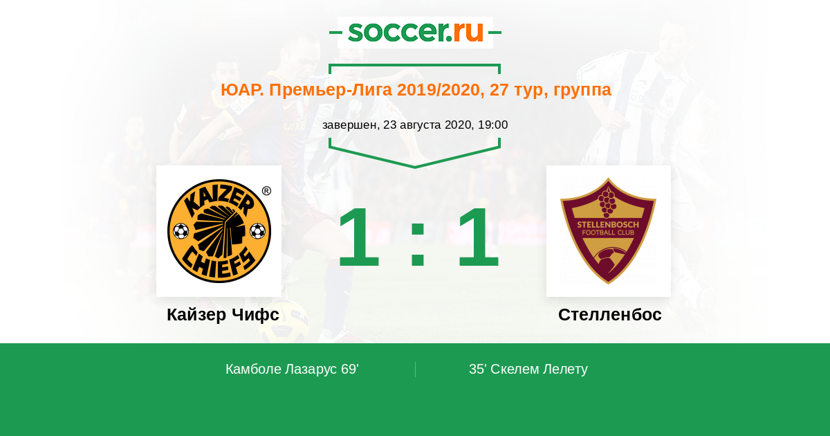 Протокол матча Кайзер Чифс против Стелленбос
