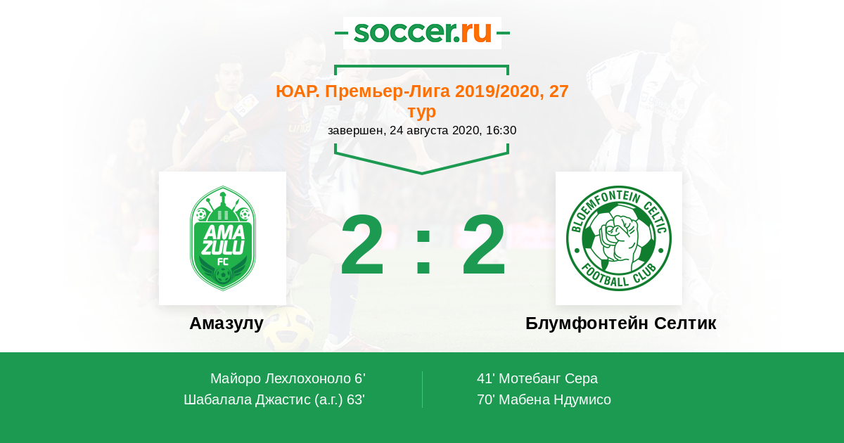 Протокол матча Амазулу против Блумфонтейн Селтик