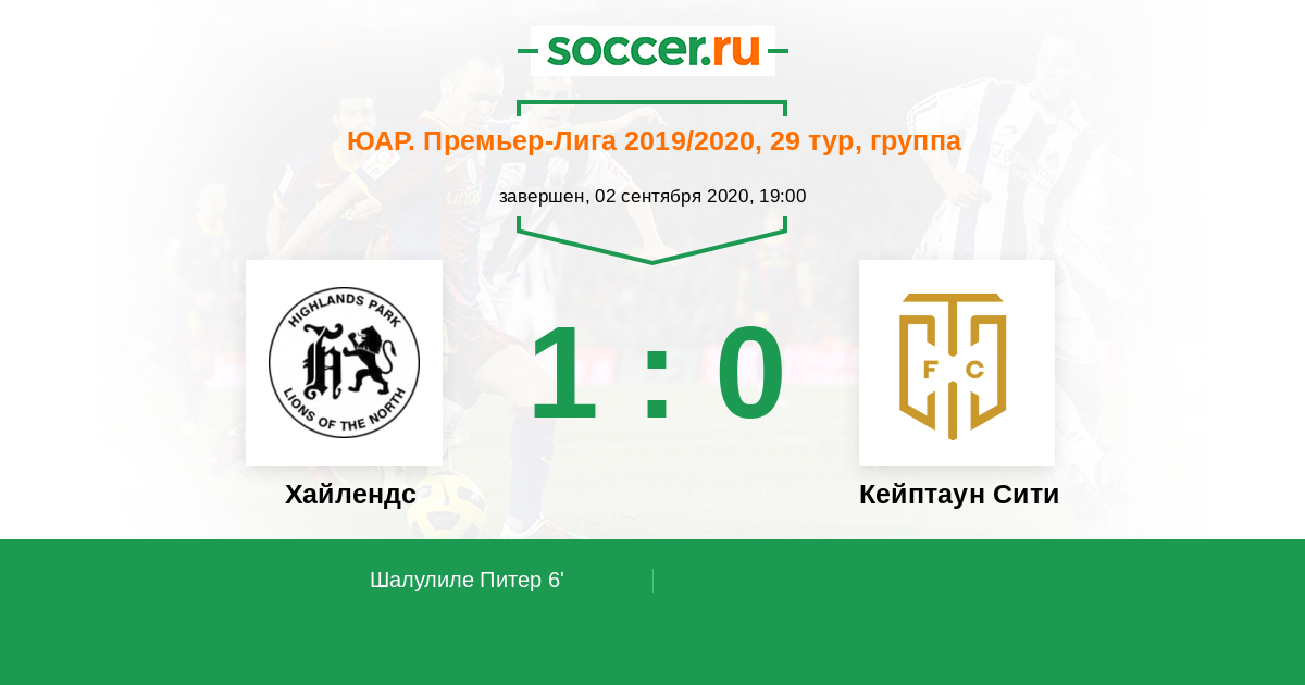 Протокол матча Хайлендс против Кейптаун Сити