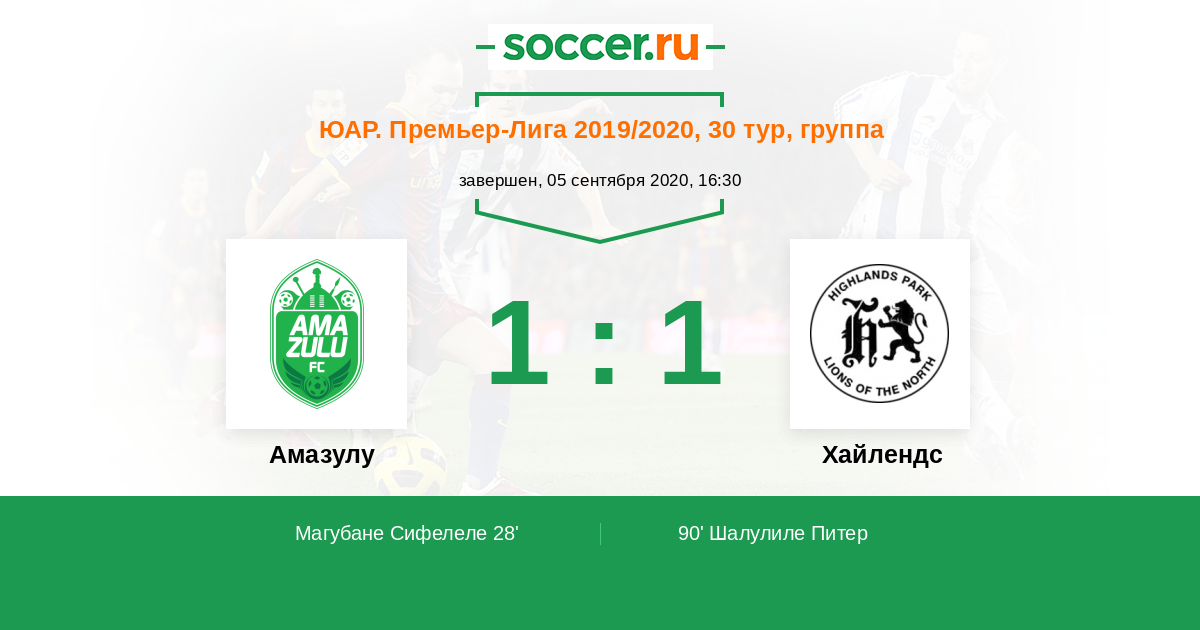 Протокол матча Амазулу против Хайлендс