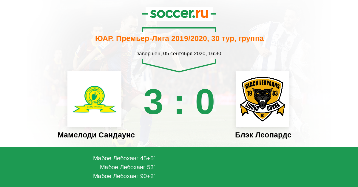 Протокол матча Мамелоди Сандаунс против Блэк Леопардс