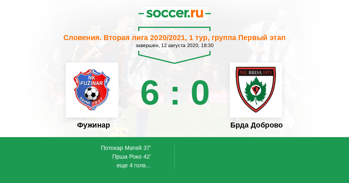 Протокол матча Фужинар против Брда Доброво