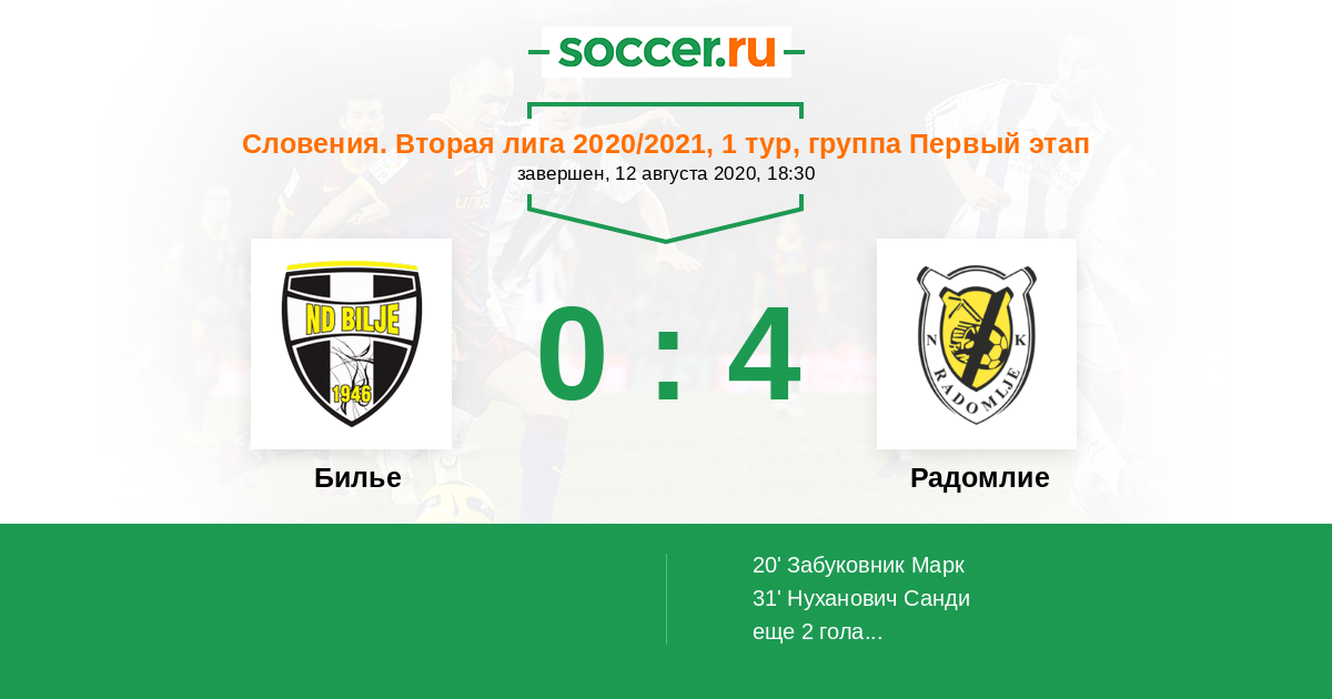 Протокол матча Билье против Радомлие