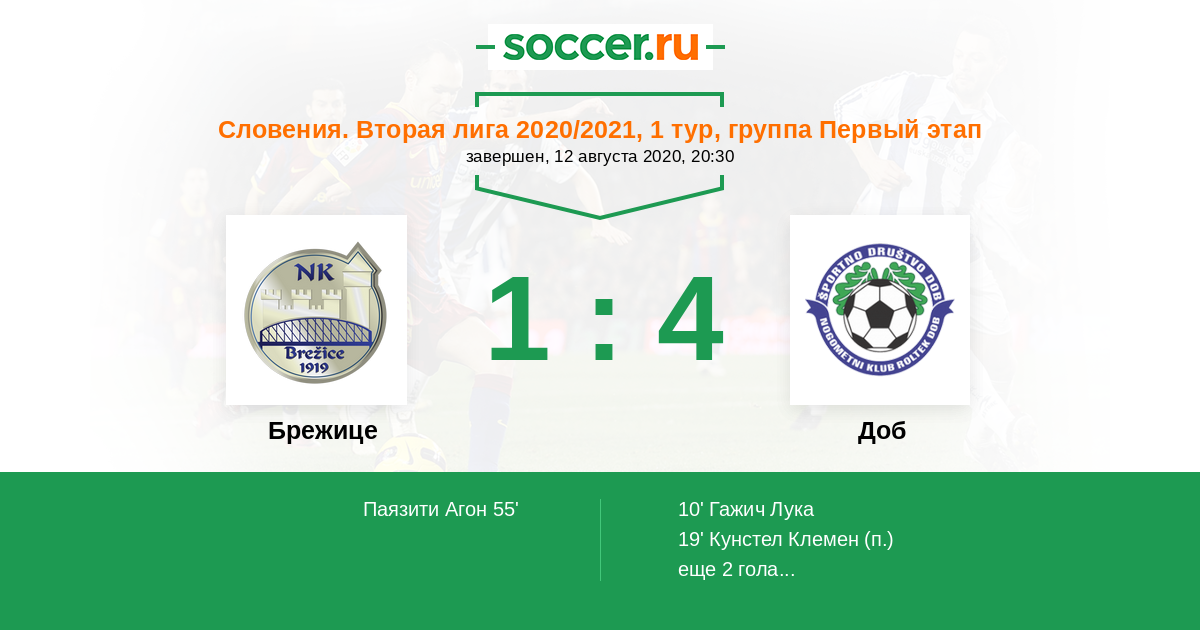 Протокол матча Брежице против Доб
