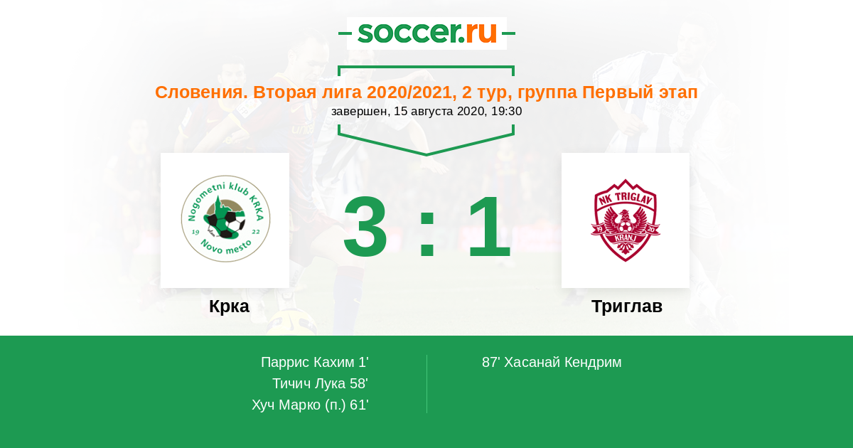 Протокол матча Крка против Триглав