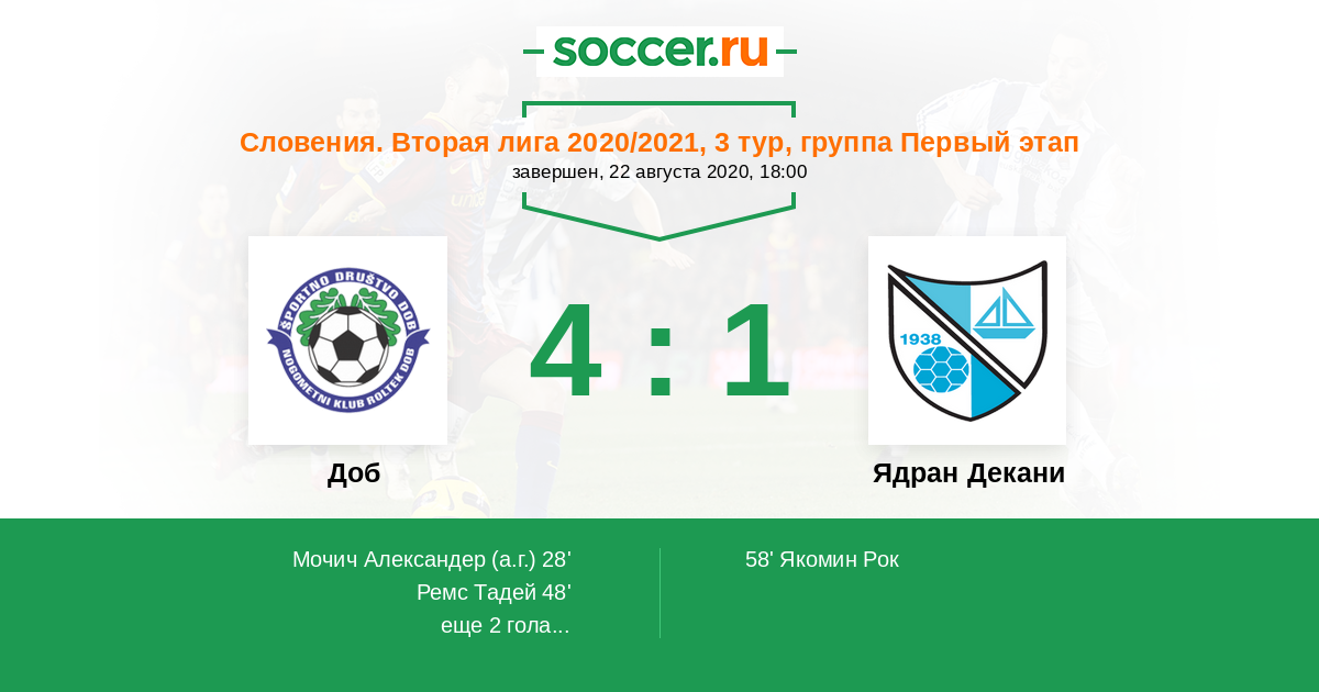 Протокол матча Доб против Ядран Декани