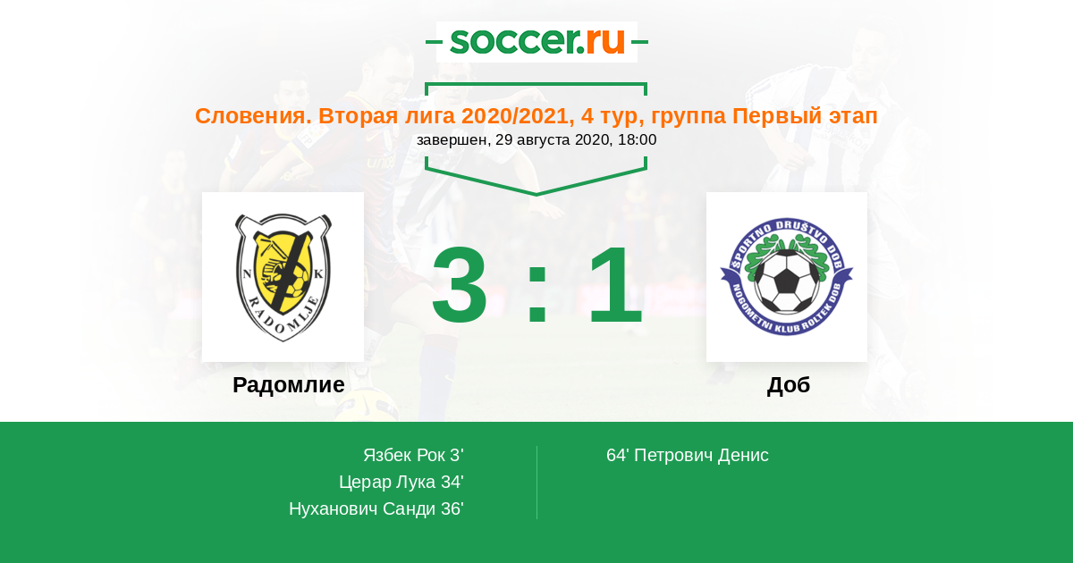 Протокол матча Радомлие против Доб
