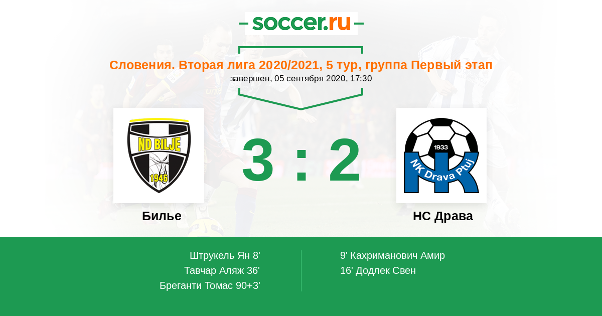 Протокол матча Билье против НС Драва