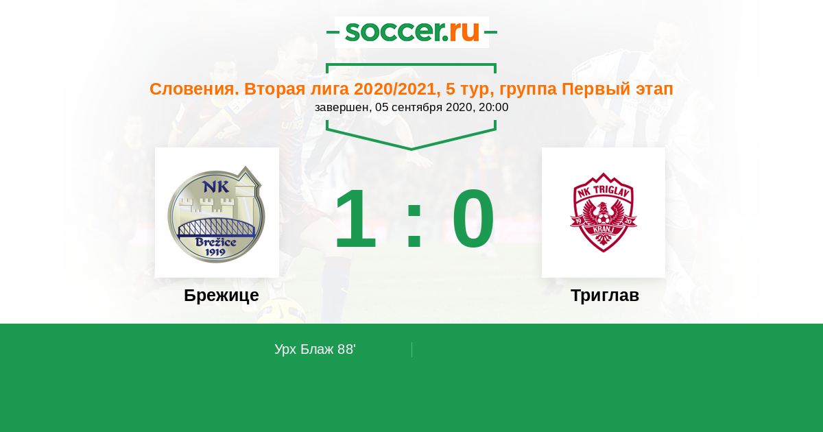 Протокол матча Брежице против Триглав