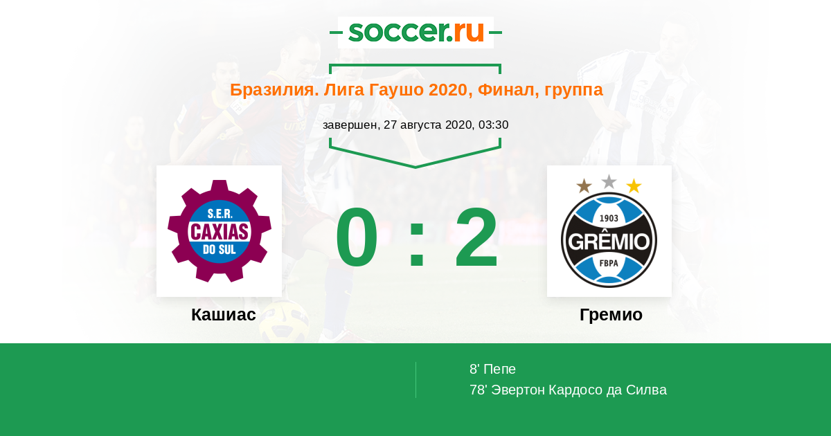 Протокол матча Кашиас против Гремио