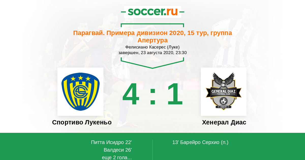 Протокол матча Спортиво Лукеньо против Хенерал Диас