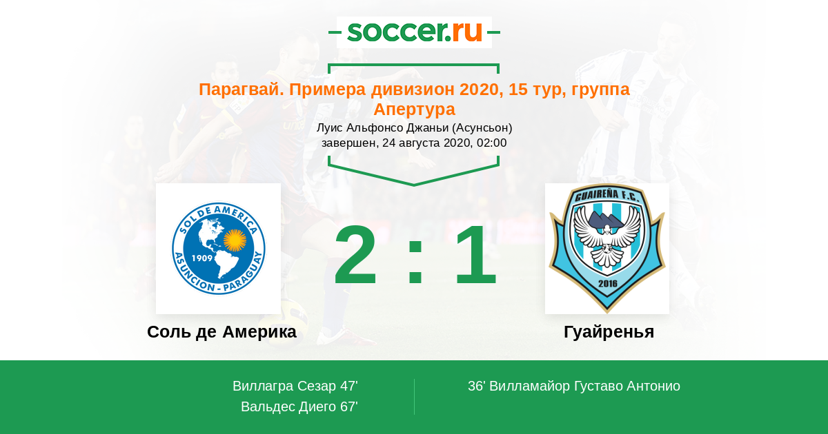 Протокол матча Соль де Америка против Гуайренья