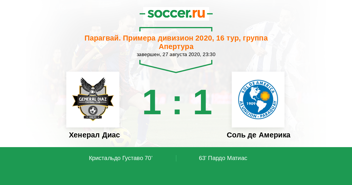 Протокол матча Хенерал Диас против Соль де Америка