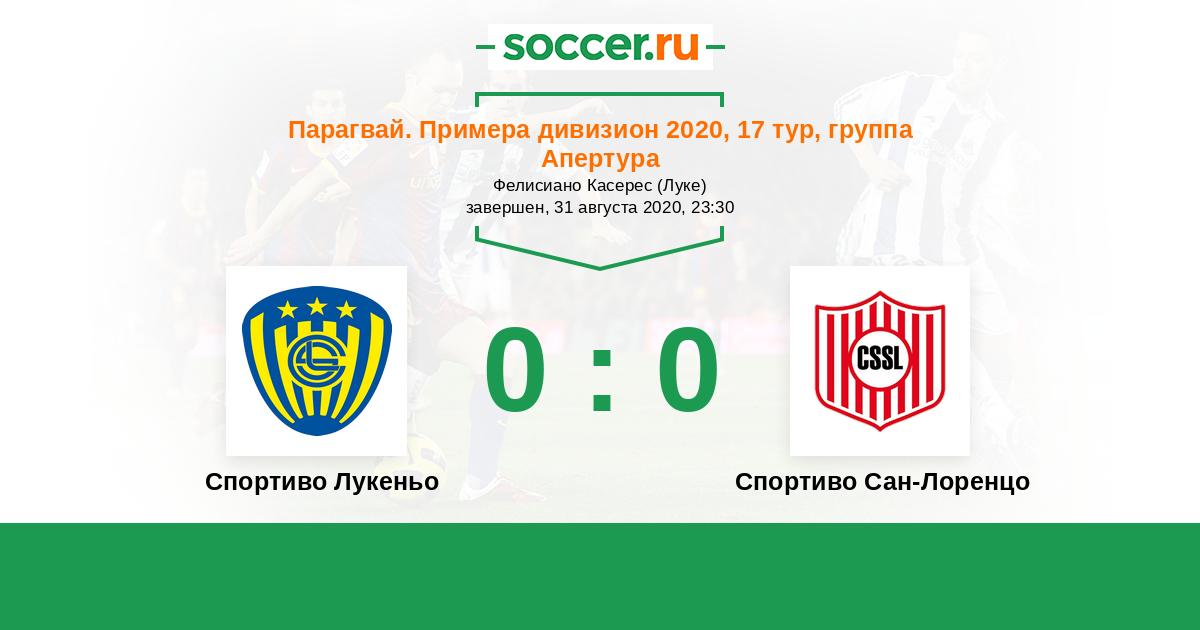 Протокол матча Спортиво Лукеньо против Спортиво Сан-Лоренцо
