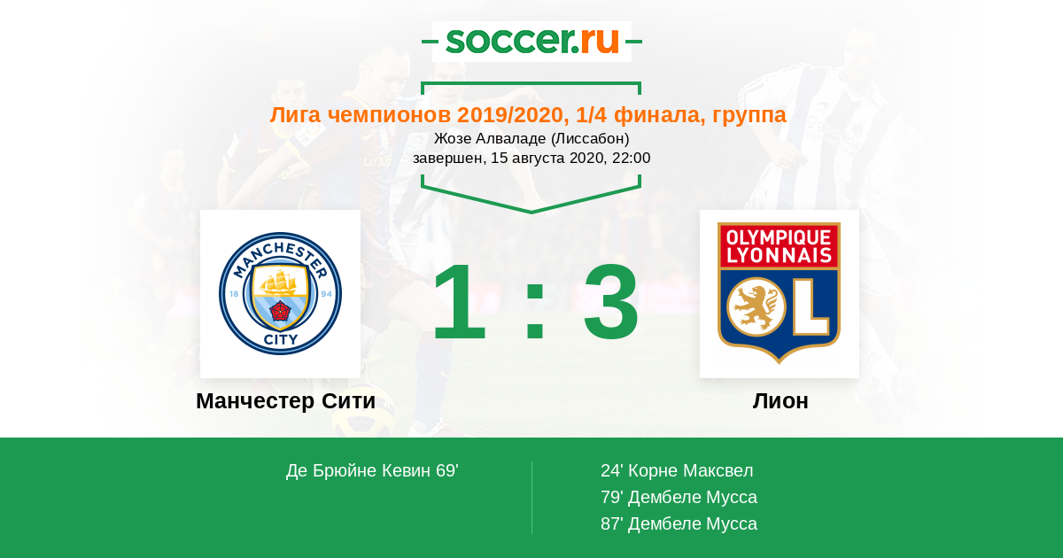 Лион начинает всегда очень лихо , забивает , а потом потихоньку просаживается, как казалось . Но стоило МС сравнять счет , как Лион вновь преобразился, вновь побежал и добился таки своего. Ну и Гарсиа великолепно прочувствовал игру, сделав очень качественные замены. В итоге - очередное фиаско МС в ЛЧ.