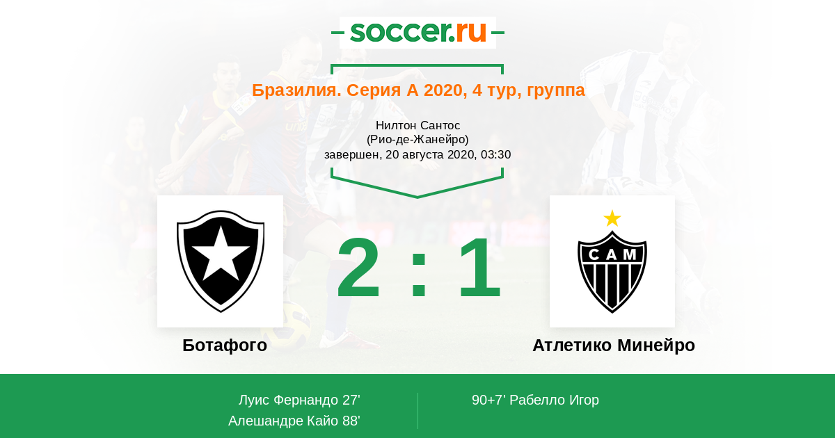 Протокол матча Ботафого против Атлетико Минейро