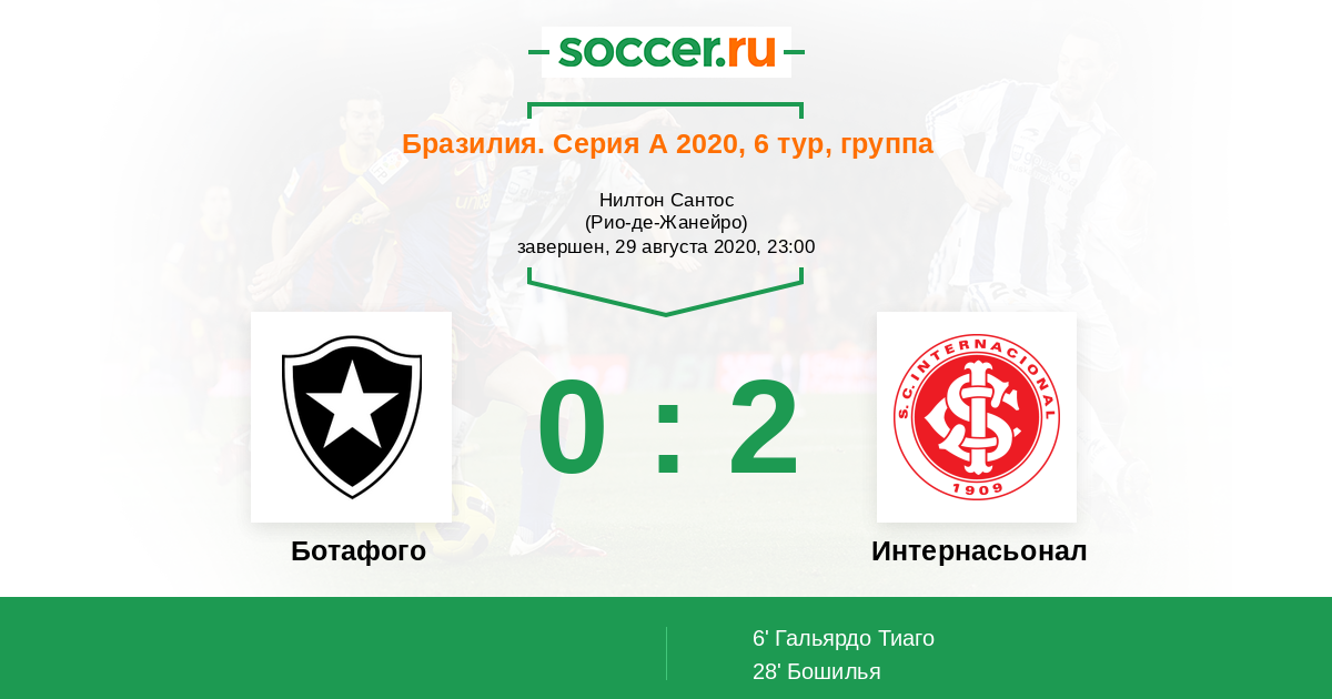 Протокол матча Ботафого против Интернасьонал