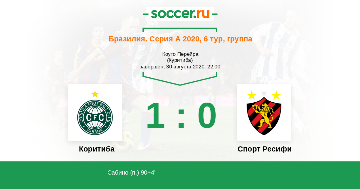 Протокол матча Коритиба против Спорт Ресифи