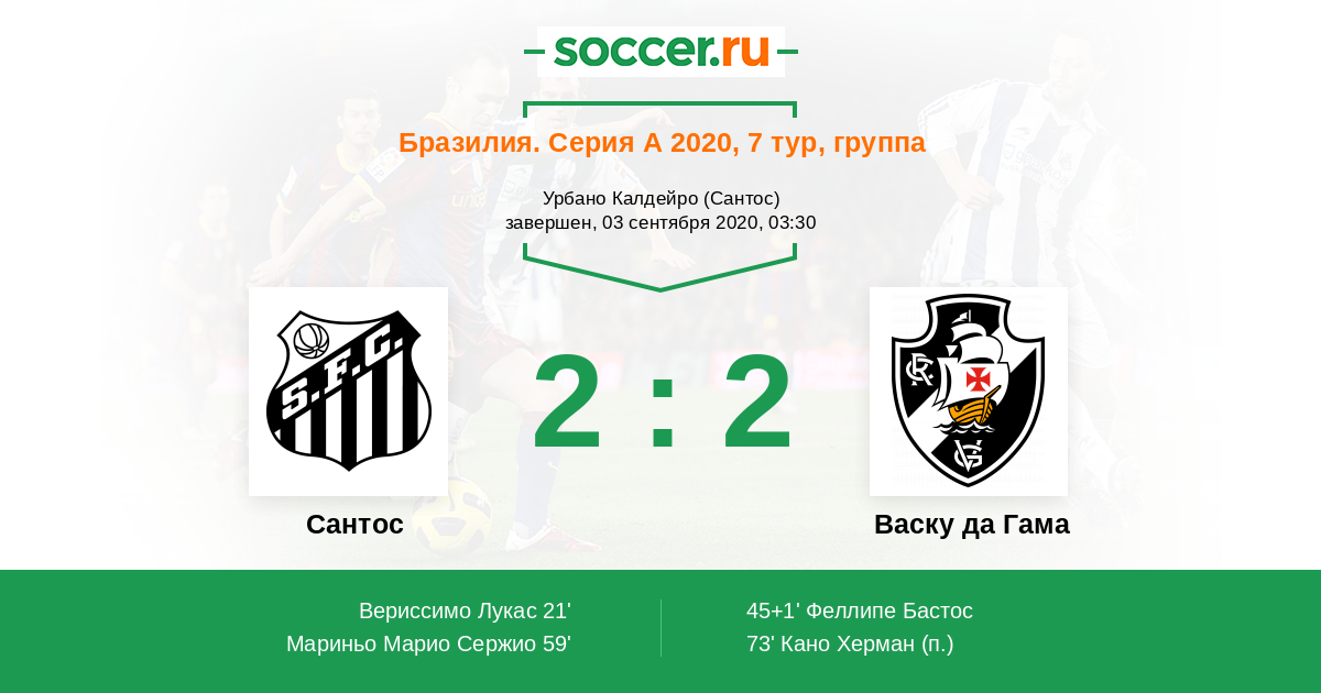 Протокол матча Сантос против Васку да Гама