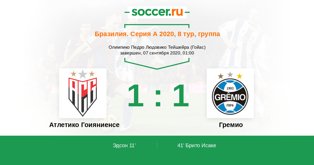 Протокол матча Атлетико Гоияниенсе против Гремио