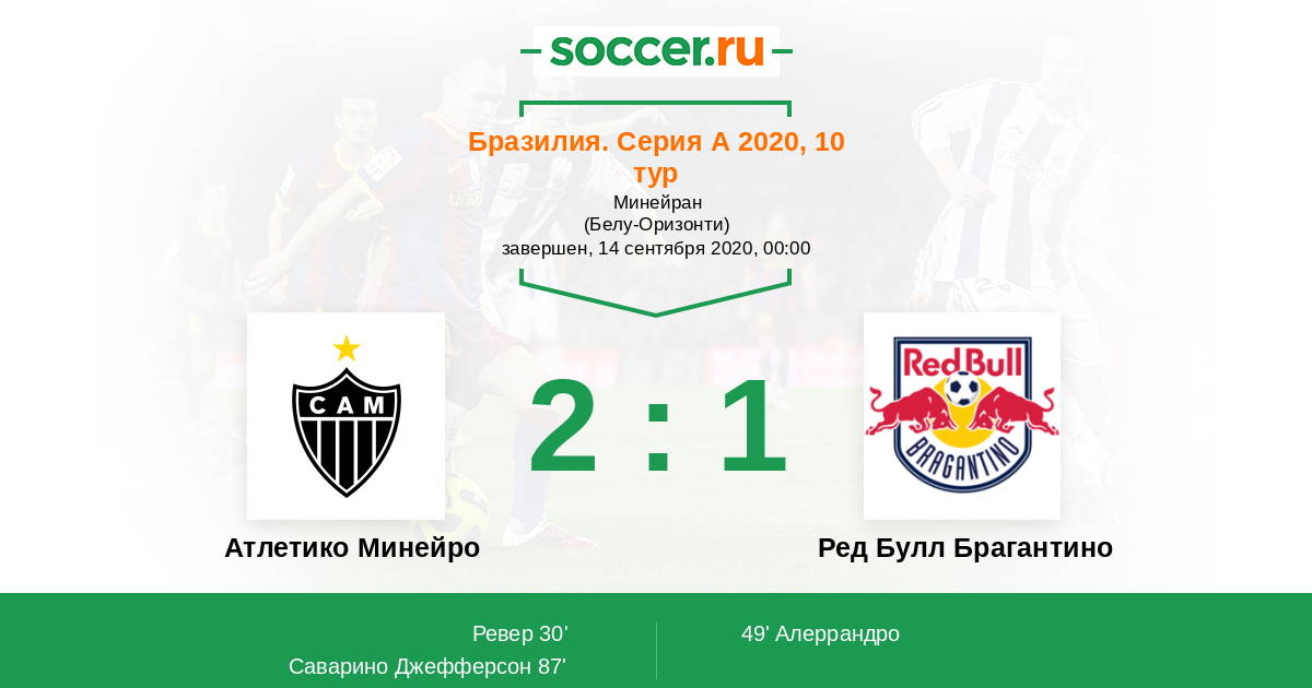 Протокол матча Атлетико Минейро против Ред Булл Брагантино