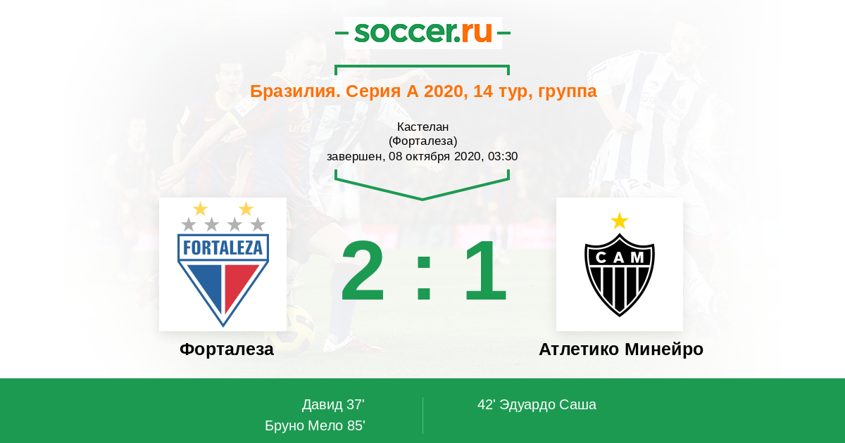 Протокол матча Форталеза против Атлетико Минейро