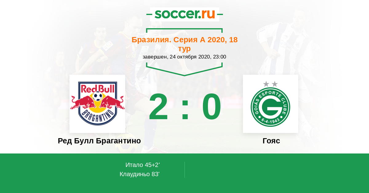 83' (2:0) Клаудиньо (10) (Эвангелиста Лукас (35))