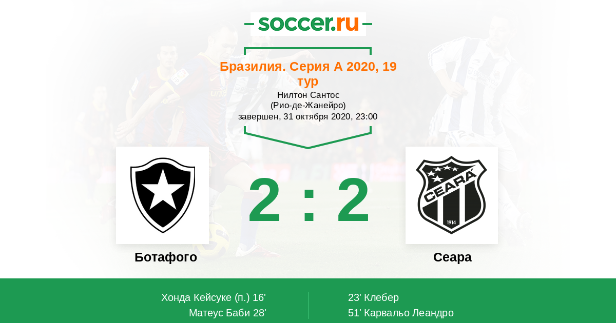 51' (2:2) Карвальо Леандро (80) (де Соуза Винисиус (29))