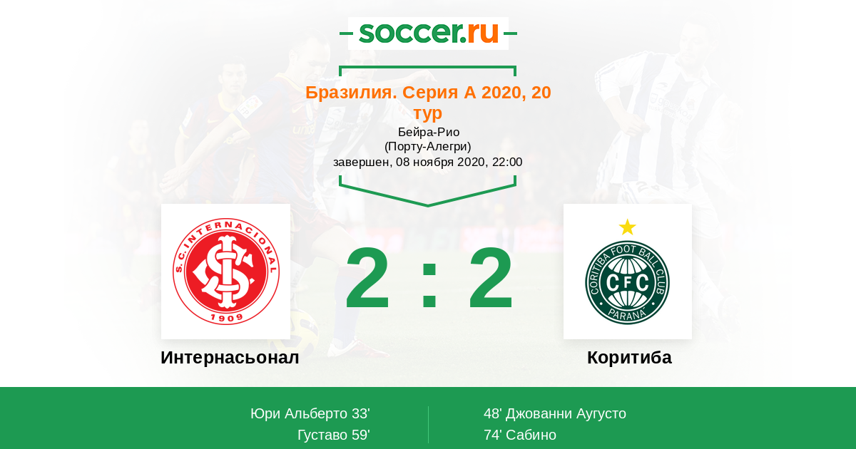 Протокол матча Интернасьонал против Коритиба